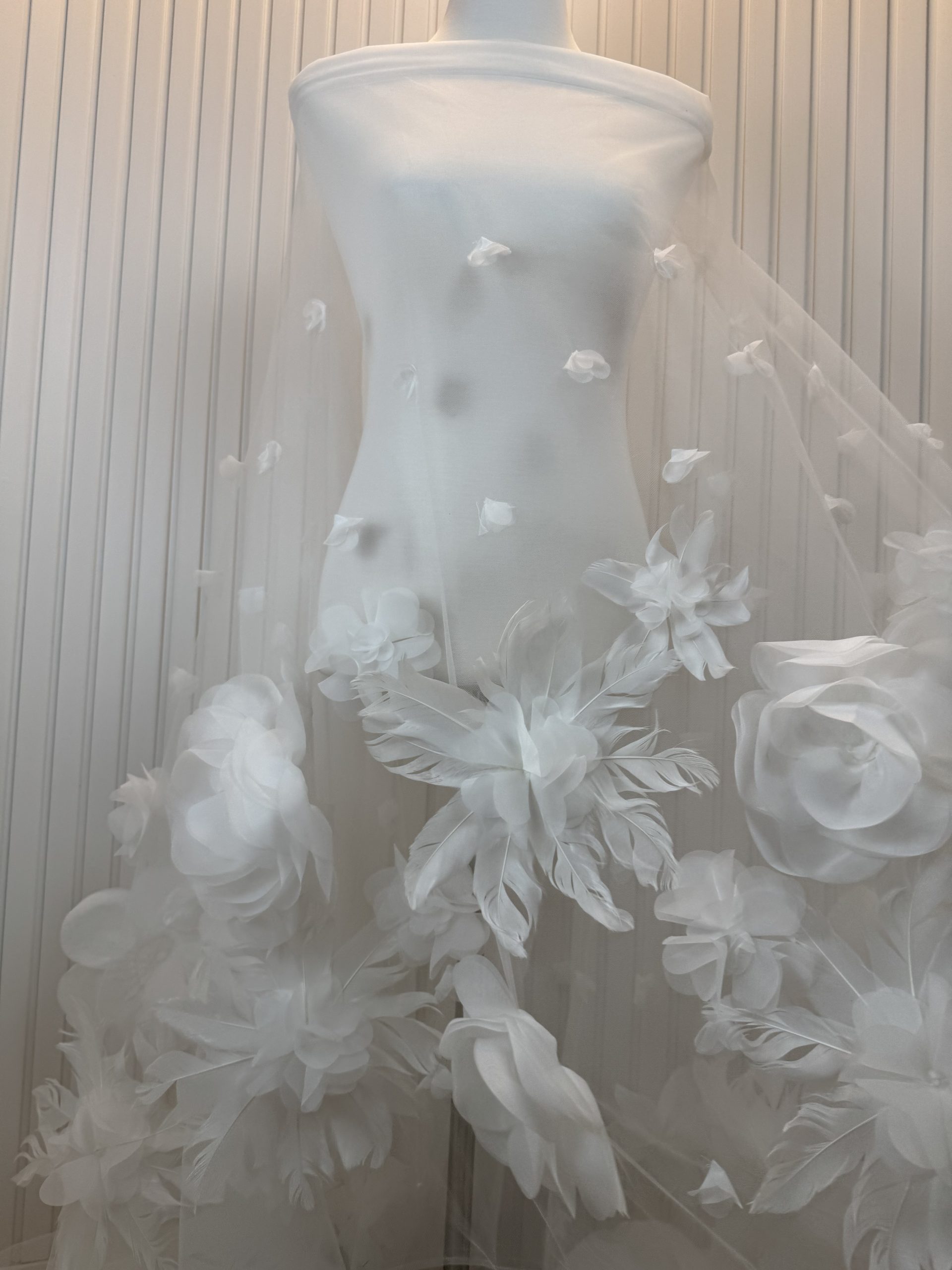 5. 3d Flower Feather Wedding Lace Fabric Nigerian Fancy Mesh With Feather Net Lace Fabric