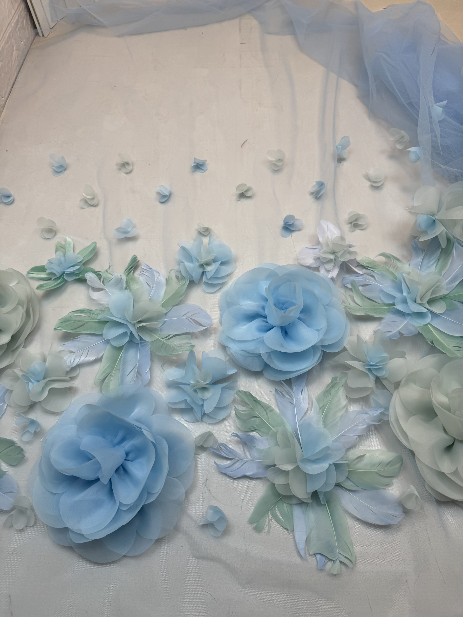 3d Flower Feather Wedding Lace Fabric Nigerian Fancy Mesh With Feather Net Lace Fabric