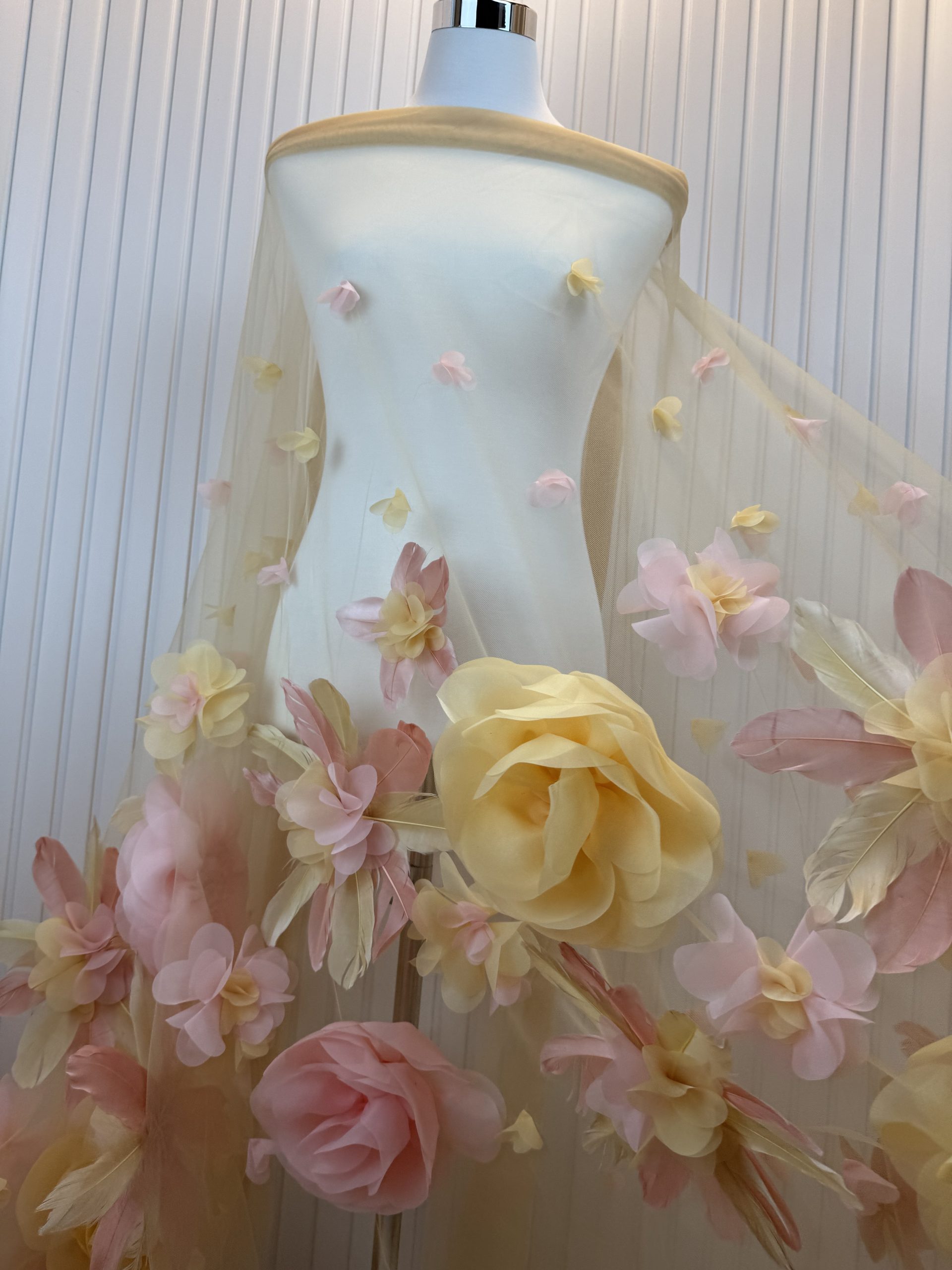 Tags: children's dress fabric, dress lace fabric, Embroidered Designer Dress lace Fabric, Floral Dress embroidery lace, Girl Dress Lace Fabric, Haute Couture, Multi-color Flower Tulle Floral Mesh Embroidery Fabric, Oscar de la Renta 3D Floral embroidered Dress Fabric