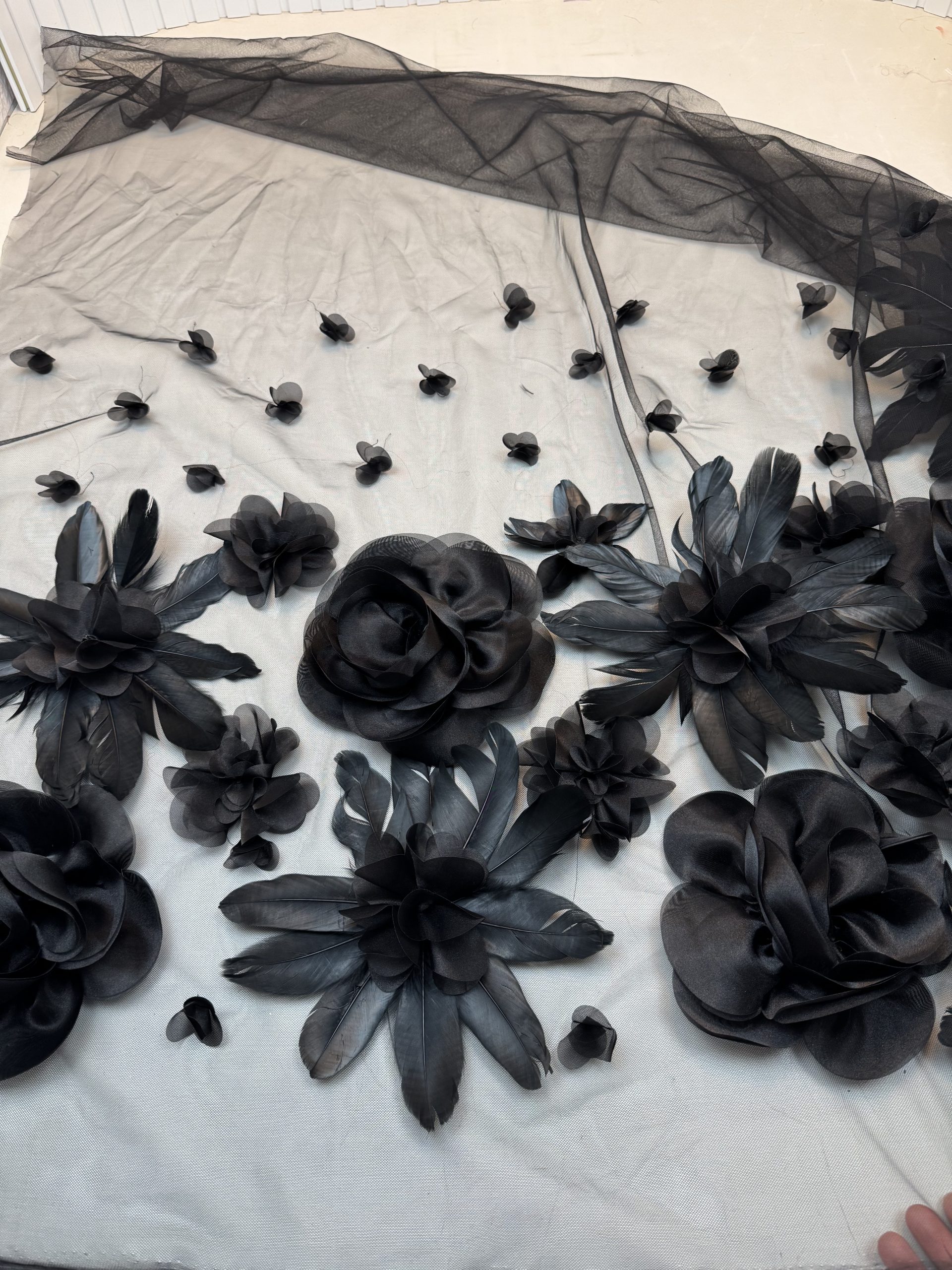 Product name:3d Flower Feather Wedding Lace Fabric Nigerian Fancy Mesh With Feather Net Lace Fabric