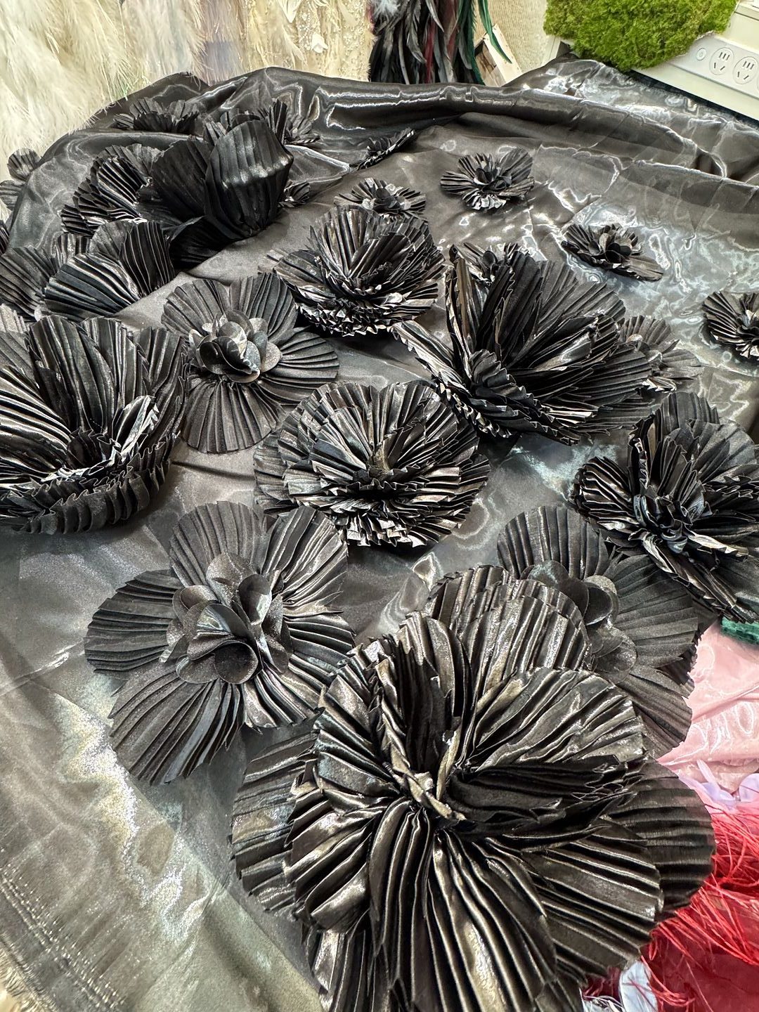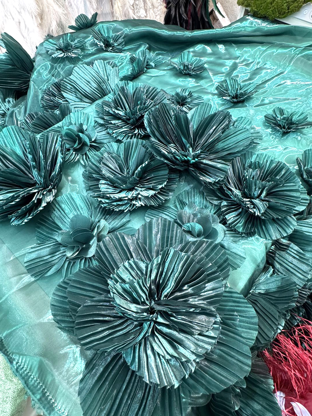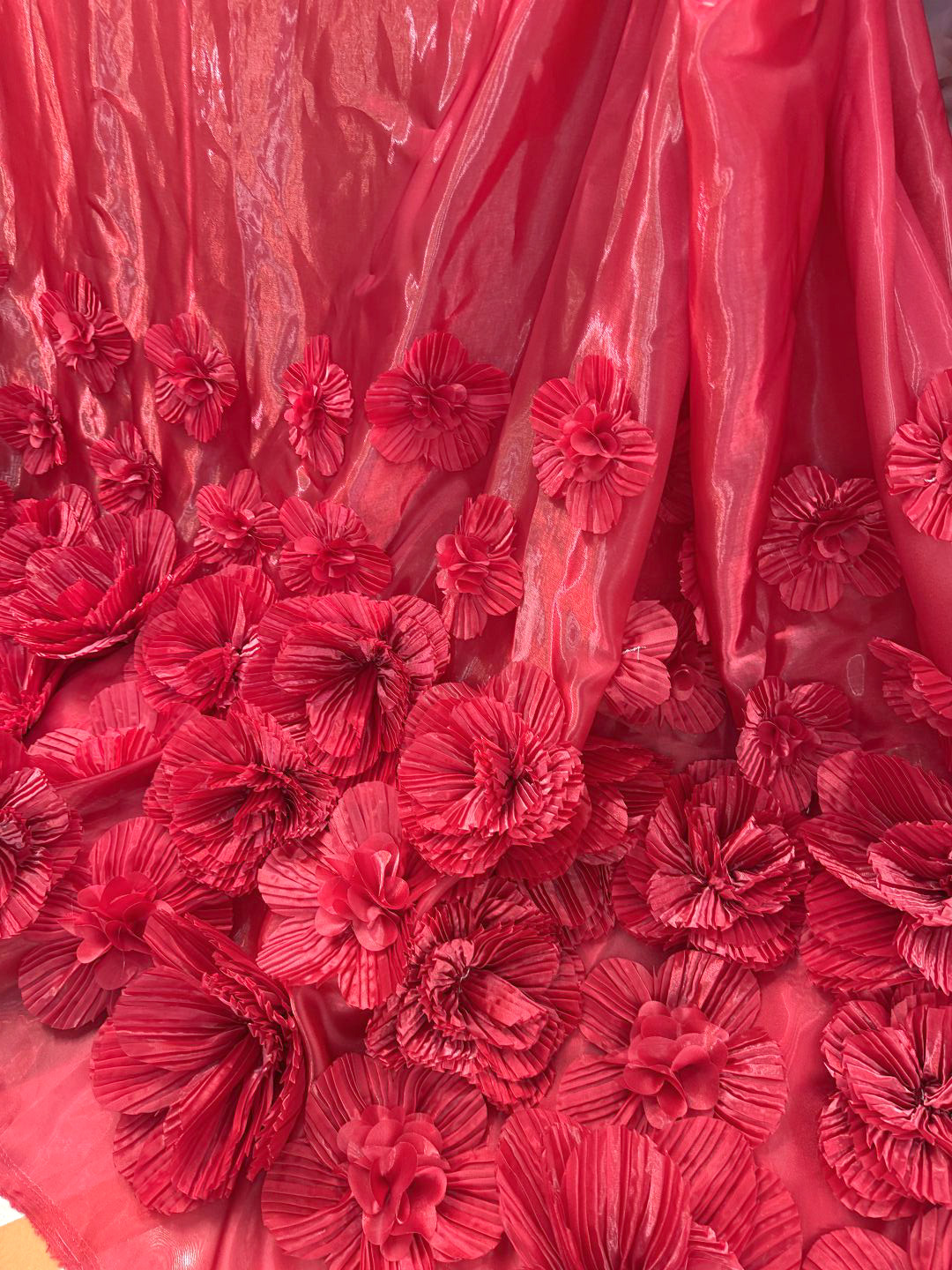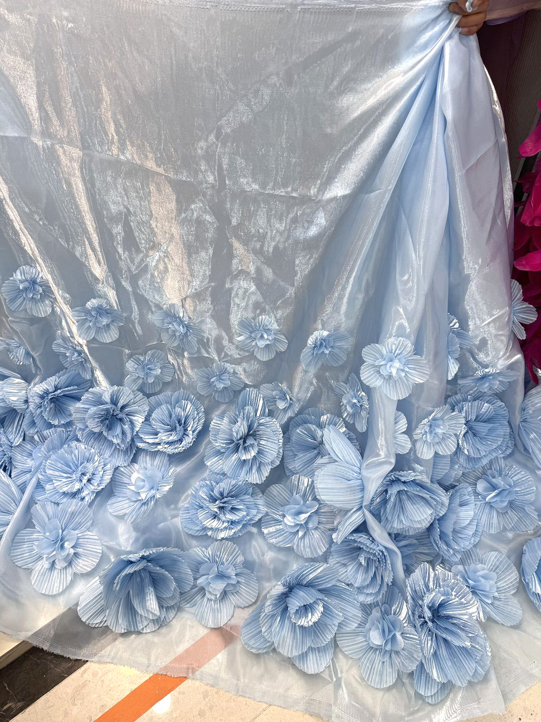 5. Haute Fashion Organza Fabric with 3D Rose Flowers Embroidery Lace Dresses Fabric